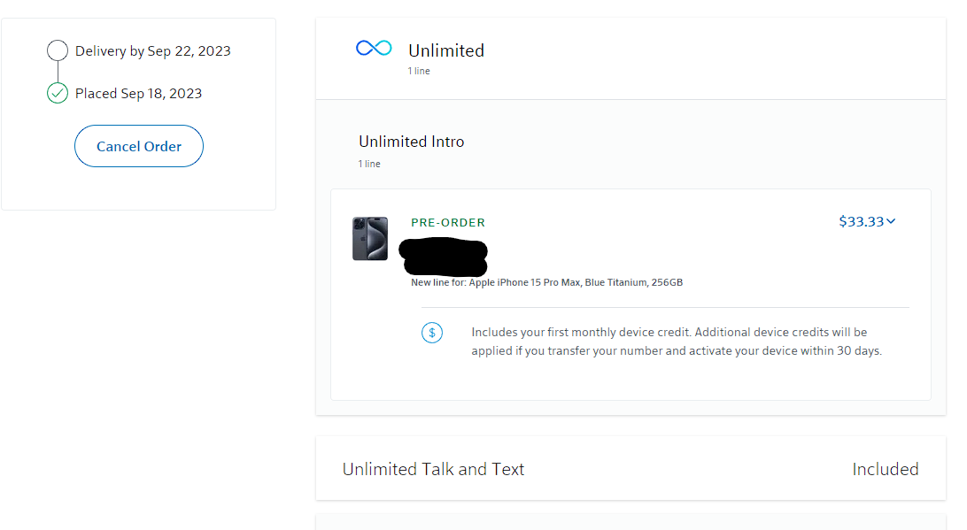 I pre-ordered an Xfinity Mobile 256GB White Titanium 15 Pro Max on 9/15 with delivery on 9/22. I canceled it this afternoon after seeing Xfinity Mobile still had 256GB Blue Titanium 15 Pro Max available for 9/22 delivery.