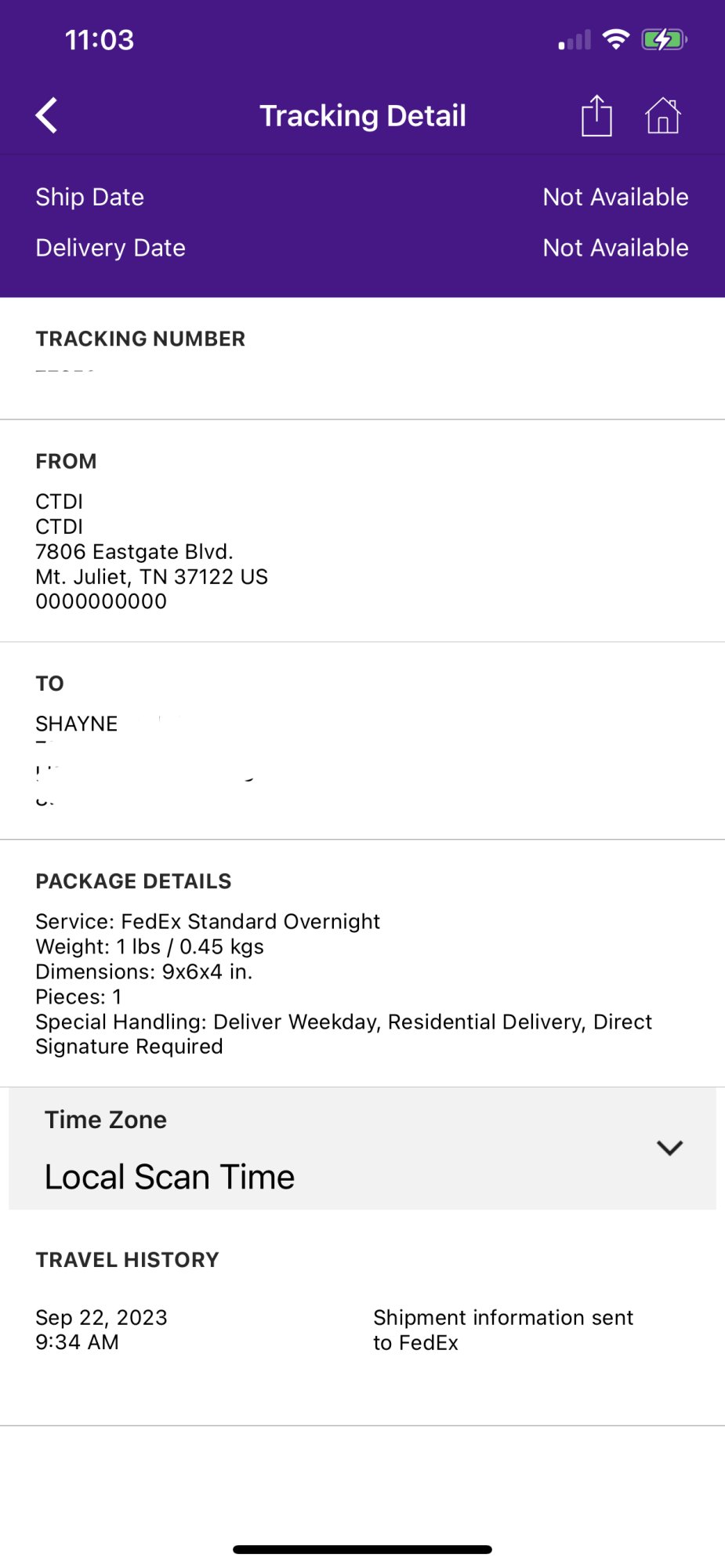 Here’s my Xfinity order info stating that it would be delivered today as well.I ordered my 256gb Blue pro max on the 16th. Granted it was a day after preorders opened but it said, and still does, that it would be delivered on the 22nd. I have yet to receive any type of shipping notification but when I check my fedex app I found this (see image). I guess that means I’m not getting a delivery today like the Xfinity mobile app said if it’s just now being processed in Tennessee (I’m in Connecticut). Enjoy your new phones everyone, I’ll be staying off the internet until next week when I get mine 😅