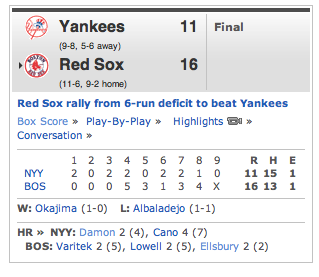 Cano in fact had 2 HR and 5 RBI and Lowell had 1 HR and 6 RBI. Even at half of the erroneous reports, not a bad day at the office.