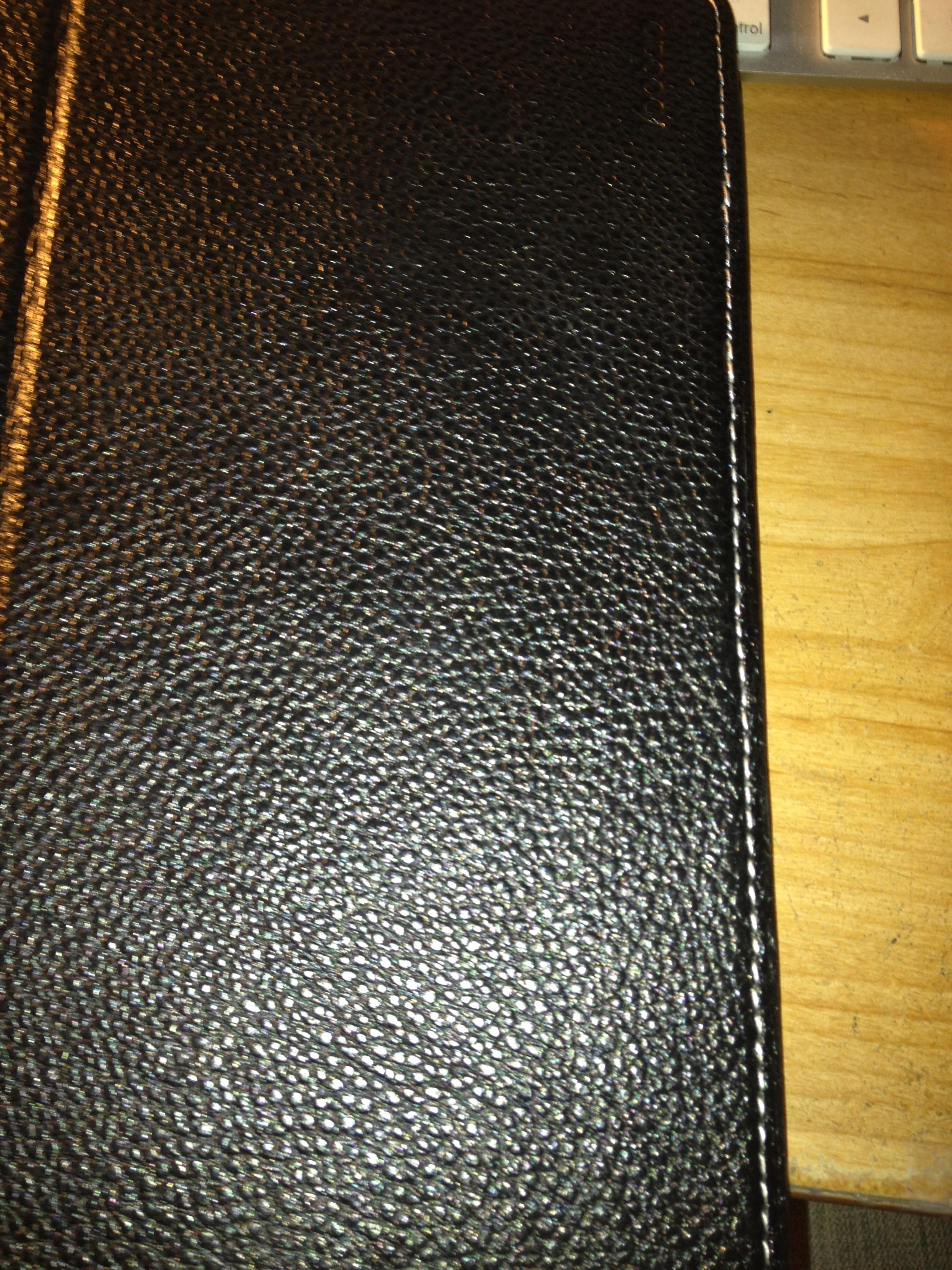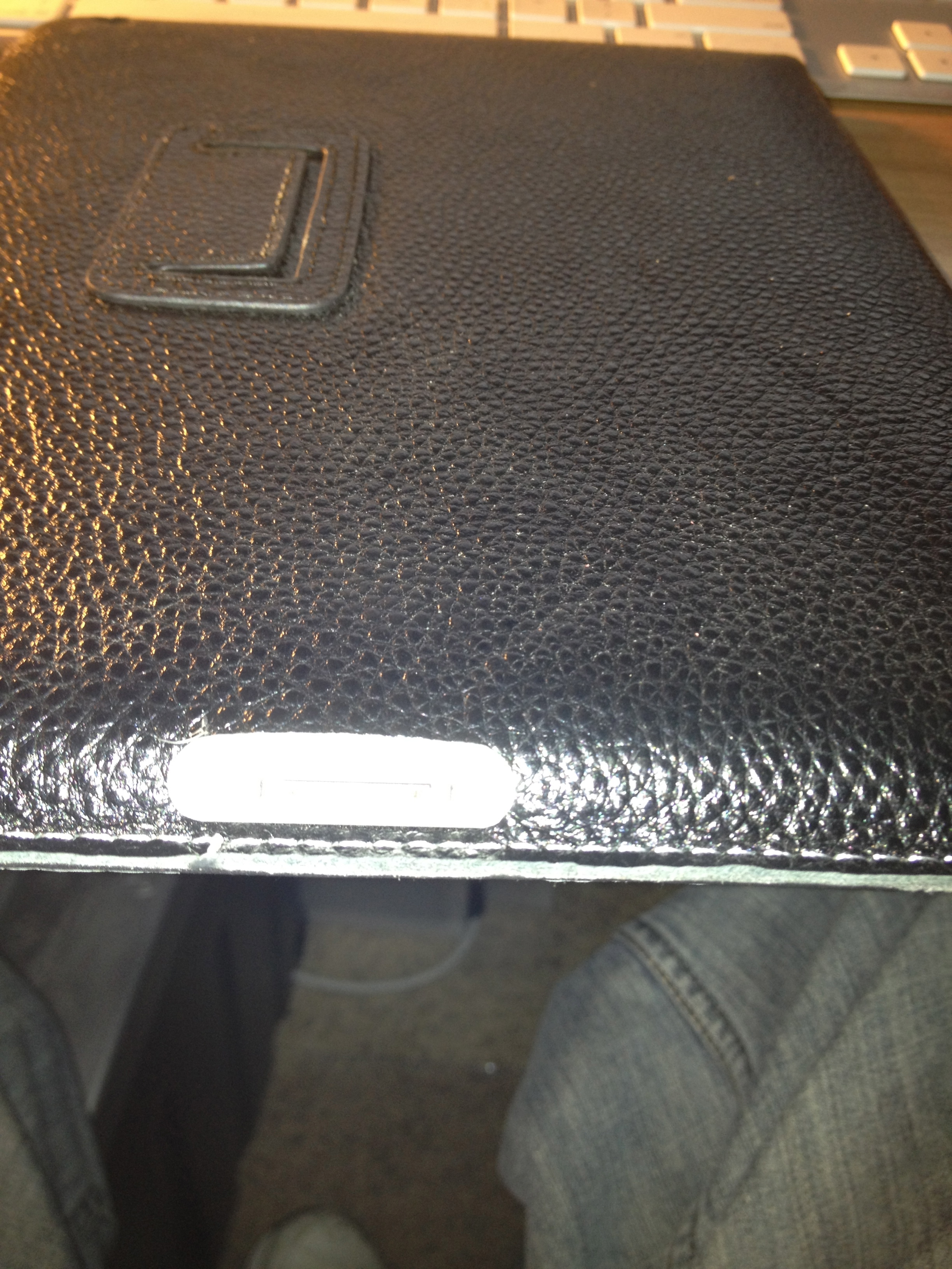 The stitched seams at the center "binding area" where the leather interior flap folds over to secure iPad in place... They seem to curve inward a bit, which seems to serve the curvature of the iPad, helping hold iPad in place at its corners. Some might view it as a defect, but I kinda think of it as a nicely taylored product. Meh, maybe it's a defect. But it isn't a big deal. I think it's just the way it's stitched, well enough to accept the curvature of the iPad's back aluminum shell and the corners that curve.