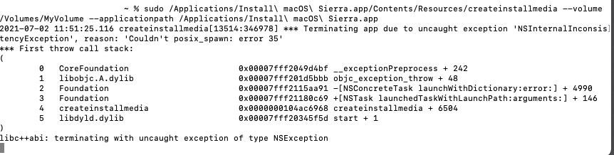 $sudo /Applications/Install\ macOS\ Sierra.app/Contents/Resources/createinstallmedia --volume /Volumes/MyVolume --applicationpath /Applications/Install\ macOS\ Sierra.appThank you this worked for me to create a Mojave installer using a M1 MacMini running Big Sur.Sorry to necro but I found a solution, all that is required is to codesign the createinstallmedia binary