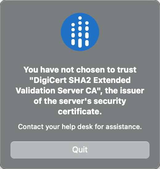 You have not chosen to trust "DigiCert Global Root G2", the issuer of the server's security certificate.