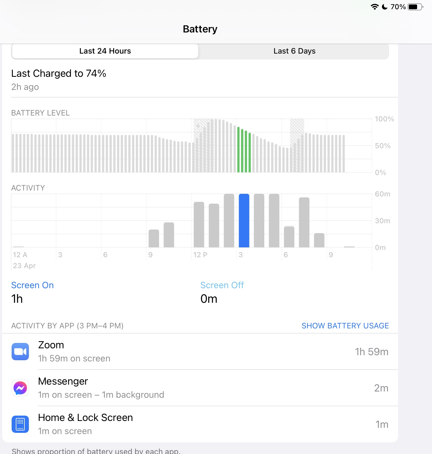 cmamb said: How can Zoom use 1h59, in 1h time? Battery drain is very extensive, in comparison with every other app I use, like drives/lumafusion etc. I searched the forum but didn’t find anything. Click to expand... It's using the front-facing camera for long periods of time. That can drain your battery very quickly.
